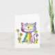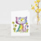 Cute Whimsical Lycklig Cat med Gula blommor Kort