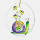 Cute Whimsical Lycklig Snigel med Gula blommor Julgransprydnad Keramik