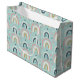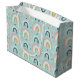 En presentpåse med en underbar mönster. Färgfulla regnbågar i ett program för rosa, blått och grönt färg. Små hjärtan och cirklar tillför lite stollig. Cute feminin och roligt.