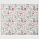 Den här söta julomslutningen pappra har en roligt vismisk mönster av jultomteillustrationer, träd och presenter i rosa, rött och teal.