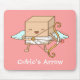 En söt kub klädd i vita underkläder, ett par ljusblå vinge på baksidan, håller fast vid en båge och kärlek pil. Matchande text lyder "Kubas pil" som är en rolig pun ordlekare på cupid.