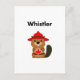 Visar en söt brun tecknad bäver som håller ett rött kanadenskt apel löv och "Whistler" ovan. Whistler är ett populärt skidsemestermål och vintersemestermål i Westerna Kanada. Snygg souvenir. För turister, skidåkare, snowboarders, invånare i Whistler, brittiska colombianer, kanadensare och besökare i Kanada. För bäver och djur älskare. För barn.