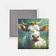 Cute White Ai Cow med horn och blommor Magnet