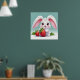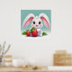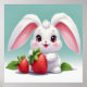 A sweet white bunny holding strawberries with a happy smile and big pink ears. This adorable artwork is perfect for nurseries, kids’ rooms, or anyone who loves cute animal prints. It adds a cheerful and playful touch to any wall decor.