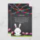 Cute White Chalkboard Bunny Baby Shower Tack Kort
