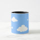 This adorable coffee mug features a seamless pattern of cute white cartoon clouds on a bright sky blue background. Perfect for adding a touch of joy and calmness to your morning coffee or tea routine. Ideal as a gift for kids, teachers, friends, or anyone who loves cheerful and minimalist cloud designs.