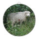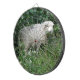 Den här fantastisk-ritytan har ett foto av ett sött, fluffigt får. Fåren omges av vild blommor och långgräs och äter lite löv. Den har en tjockvit jacka av ull och en söt svart näsa.