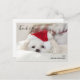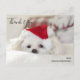 Tack för vykortet med ett vackert foto av en söt vit dogm med en röd julhatt.