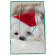 Gåsväska med ett vackert foto av en söt vit dogm med röd julhatt.