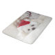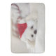 Ett badmatt med ett vackert foto av en söt vit dogm med en röd julhatt.