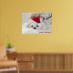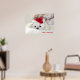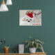 En poster med ett vackert foto av en söt vit dogm med en röd julhatt.
