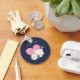 Nyckelkedja för personlig med en lämplig grafisk illustration. En vit kattunge med en söt bild på hennes päls. Det går fredligt. Ett stort rosa hjärta bakom henne och några små stjärnor också. Mörk blått bakgrund.