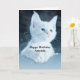 Födelsedagskort med ett foto av en vit kort-ledd kattunge med ljusblå ögon. Startar in i avstånd. Tassar korsade i typiska kattunge mode.