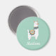 Cute White Llama Mint Grönt Monogram Namn Magnet
