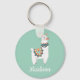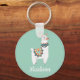 Cute White Llama Mint Grönt Monogram Namn Nyckelring