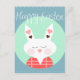 Perfekt för Påsk med en söt tecknad vit Påskhare kanin med rosa hjärta på öron mot en baby pulverblå bakgrund. Snyggt med en vintage känns bra för en Påsk-gåva.