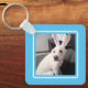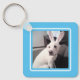 Cute White Puppy Hund med Påskhare Öron Blue Nyckelring