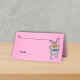 Det här uppfällda platskortet för party, evenemang och bröllop är vibrerande rosa med en söt vit kanin ge ett tummar upp och med en svart bogslips. Med mallarna anpassar du området namn och bordsnumret och texten på baksidan.