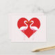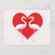 Cute White Rosa Flamingos med rött hjärta Helg Vykort