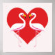 Ett exempel på vacker rosa flamingo älskare i kärlek med stort rött hjärta i bakgrunden. Den här söta tecknaden och den berömvärda rosan kawaii flamingos som inspiration för att fira valentins dag extra speciell och söt, och fullt av kärlek. Låt oss vara romantisk och uttrycksfull den här valentindagen.
