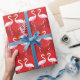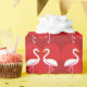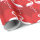 Cute White Rosa Flamingos med rött hjärta Presentpapper
