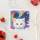 En söt vit katt på vinterbakgrunden av glödande hjärta och snöflingor kommer att bli en underbar nyår och jul party.