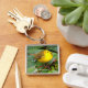 Cute Wilsons Warbler Songbird i Cherry Träd Fyrkantig Silverfärgad Nyckelring