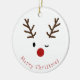 Cute Winking Rudolf Reindeer Photo jul Julgransprydnad Keramik