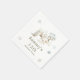 Rustic baby födelsedag napkin med söta varger, en snö täckt log, träd och snöflingor. Perfekt för en vinterfödelsedagsfest. Ord kan ändras till kostym med dina egna uppgifter eller krav