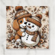 Cute Winter Duo: Hund på Patterned Hat och Snögubbe, omgiven av Blommigt Motifs