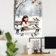 Cute Winter Girl Feeding Birds Nursery Wall Art Poster