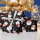 En söt penguin med en röd halsduk, ett tomat ansikte, ett snögubbe, ett christmas peppermint-godis och snöflingor på en svart bakgrund dekorerar denna pappra julomslutning. En viskig roligt mönster för Julklapp. Finns i andra färg. Designad för dig av Blackberry Boulevard.