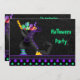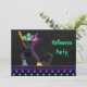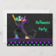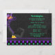 Roligt Halloween fest inbjudningskort för barn, familj och vuxnor med en söt, visemisk häxa fylld med godis. Bakgrunden är en elegant svart vintage grunge shabby chic damm med lila och grönt polka dots gräns och tryckt svart snöre.Vänligen notera: Alla inbjudningar på Zazzles webbplats har platta tryckta bilder. Roligt, snyggt för barn, familj och vuxnor party. Hela texten är helt anpassade/anpassbar till kostym som du behöver - många typsnitt och färger att välja bland. Dessa visuella inbjudningar visas på båda sidor. Originalteckning ©Belg-Doodles.com Om du behöver hjälp med att anpassa din produkt kan du kontakta mig genom min butik och jag blir lycklig för att hjälpa dig.