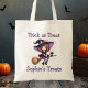 Den här söta häxan som flyger på hennes broomstick kommer att förtjata ditt lilla trick eller behandlare. Texten fält är helt och hållet anpassade.