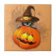 Cute Witch Cat and Pumpkin Halloween Friends Kakelplatta