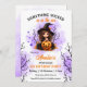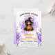 Halloween Birthday bjuder in små flickor med en söt liten häxa med brunt ögon som håller pumpen i lila orange och svart. Cute, magi och lite skämt. : ) Anpassa enkelt hela texten. - Kate Eden Art