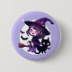 Cute Witch med Broom Black Cat Fladdermöss Måne | Knapp