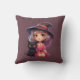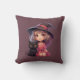 Cute Witch och Black Cat Plum Lila Halloween Kudde