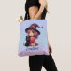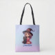 Cute Witch och Black Cat Rosa och Blue Halloween Tygkasse