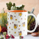 Cute Halloween-kaffet mugg med häxa candy corn, liten godispåse och mönster.