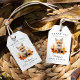 Märkre för gåvor till babydusch med matlagning och skogsyta, med en vattenfärgad illustration av en räv sitta i baby på höst löv i skuggor av orange, rött och gult. Anpassa märkrna för babyduschgåvor från baby med ditt tackmeddelande, mor till och med namn och datum för babyduschen. Designad för att samordna med vår samling av matlagningsdjur för matning av spädbarn.