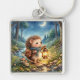 Cute Woodland Hedgehog With Lantern Fyrkantig Silverfärgad Nyckelring
