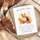 Tack för att du har ett kort med en vattenfärgad illustration av en baby-ekorre omgiven av höst löv i skuggor av orange, rött och gult. Anpassa skygglappet för träskekorns babydusch tack vare ditt kort för anpassningsbar och namn.