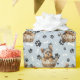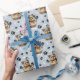 En ynklig Yorkshire Terrier-valp som söker upp en korgare basket är utmärkelsen i mönster på tillfällens gåva som är papper. Porträtt ligger mitt i mönster på svart tass avtryck och vita ben och upprepas med silver blå bakgrund. Perfekt för vilken Yorkie Hund älskare som helst!