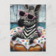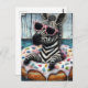 Cute Zebra Enjoys a Flyt Resa i Doughnut Vykort