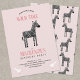 En söt zebra och några fåglar dekorerar den här rosa safari födelsedagsfest inbjudan för en flicka i alla åldrar. Baksidan har en matchande zebra mönstrad. Anpassa genom att ändra namn och text till kostym till firande.