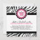 Cute Zebra tryck Födelsedagsfest inbjudan
