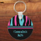 En söt nyckelring i zebra ränder mönster i svart, turkos och shock rosa. Lägg till ditt namn i den.
