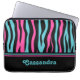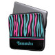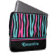 Cute Neoprene laptop sleeve 13" i zebra ränder i retro 80 i svart, turkos och shock rosa. Lägg till ditt namn i den.