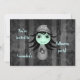 En söt liten zombiedocka med en grönt och en grått öga som bär hennes läskaste på inbjudningar från Halloween fest 5 x 7. Dessa är designade för ett barns party.